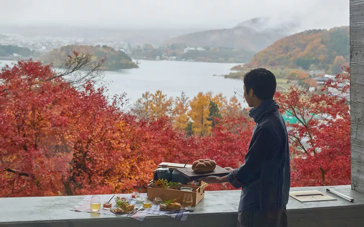 Take the train from Tokyo to this gateway to Japan’s wine region. Here, we visited wineries including Lumière, Katsunuma Jyozo, and MGVs. It’s an hour’s drive south through Yamanashi Prefecture to Hoshinoya Fuji, which offers spectacular views of the mountain.