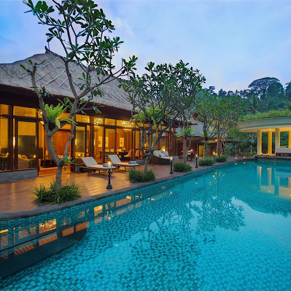 The natural beauty, exemplary service, and rich cultural heritage of Bali are reflected in the villas and suites of this Ubud resort. With views overlooking the rainforest, rice paddies, or the river, the luxury accommodations include 24-hour butler service and outdoor spaces such as terraces and private pools.