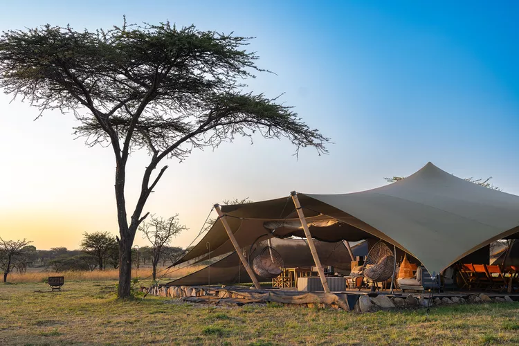That transient nature is what enticed Keith Vincent, co-founder and CEO of the hospitality company Wilderness, to create Wilderness Usawa Serengeti, a roving camp that opened on its first of nine eventual sites across the Serengeti on July 26. “In the old days of guiding, you had a vehicle and a tent, and you moved wherever the wilderness went and set up camp along the way,” Vincent says. “With Usawa, I wanted to give that freedom back to our guests.”
