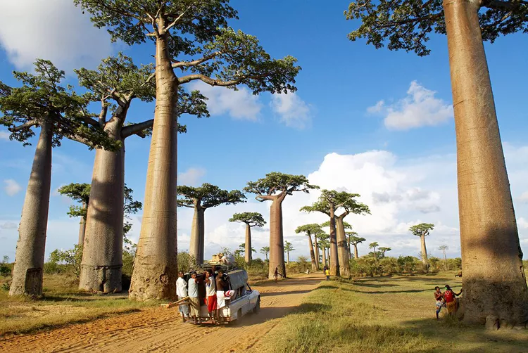 In Western Madagascar, the dirt road that connects Morondava and Belon’i Tsiribihina is home to a rare botanical spectacle, comprised of dozens of giant baobab trees. Many of these magnificent roadside trees are several hundred years old and over 100 feet/30 meters high. Because the avenue isn’t part of a national park, visitors can view the trees for free.
