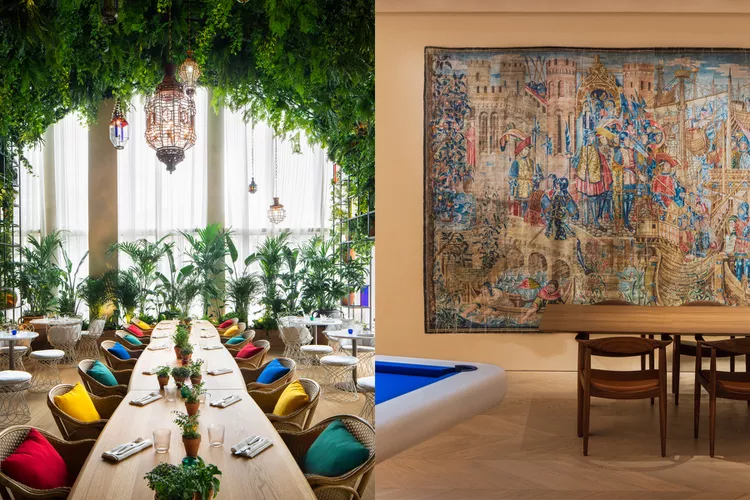 The price of a cocktail is all it costs to gain access to the Madrid flagship’s two supper-club restaurants, both of which eschew jamón ibérico in favor of international flavors. The first, Jerónimo, is the latest iteration of chef Enrique Olvera’s imaginative Mexican fare that put Cosme in New York and Pujol in Mexico City on the culinary map. Upstairs, on the fourth floor, Oroya offers flavors from another corner of the Latin world—Peruvian fish dishes and Pisco-forward beverages by chef Diego Muñoz. In good weather, enjoy your ceviche out on the slatted terrace where the signature skyline of church spires, TV antennas, and terra cotta tiles is reflected in the city’s largest rooftop pool—designed, like the rest of the hotel, for hotel guests and Madrileños in equal measure.