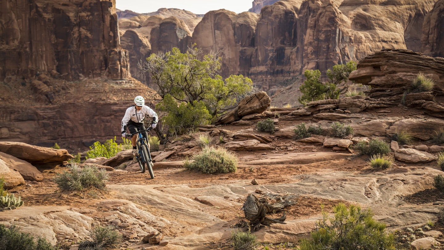 It’s also easy to access nearby Arches National Park and the Island in the Sky district of Canyonlands National Park on two wheels. A paved trail takes you right to the entrance to Arches, where you can peddle up the long winding road to the park center (around 30 miles total). Island in the Sky is a full-day endeavor, traveling mostly by road.