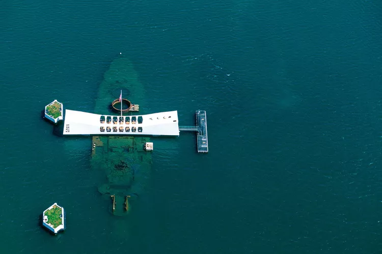 Clearly, the most famous war memorial in Hawaii is the USS Arizona Memorial at Pearl Harbor. This Memorial straddles the sunken hull of the battleship USS Arizona and commemorates December 7, 1941, the day of the Japanese attack on Pearl Harbor.
