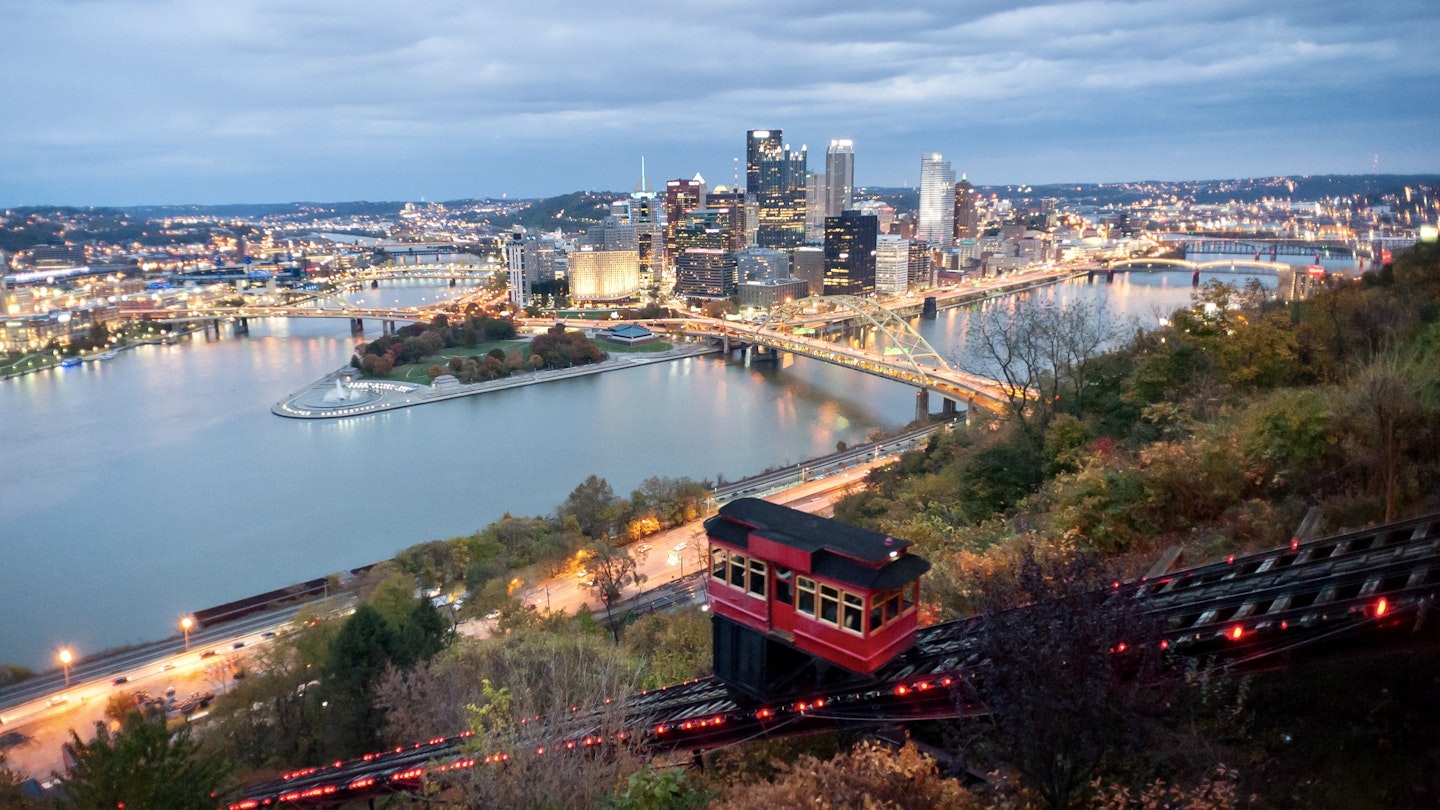 Downtown Pittsburgh, also called the “Golden Triangle” where three rivers converge, is compact and walkable. For reaching surrounding neighborhoods, taxis or rideshares (or your own car) are the easiest options, although Pittsburgh does operate a network of public buses and three light-rail lines. The funiculars, which ascend to the top of Mt Washington, offer spectacular views of the Downtown skyline and are a highlight of any visit.