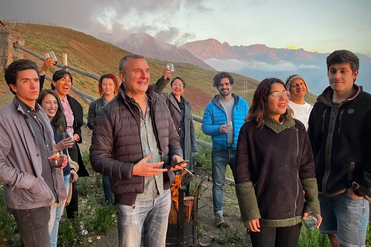 The crew breaks and heads into the Andes Mountains. If you’ve seen the show, you know Phil invites everyone he’s met throughout the city for one last meal. This final meal occurs amidst the beauty of Chile’s mountains. There’s an open fire and a potluck. These are the absolute best chefs in the country, all coming together for a family meal with Phil.