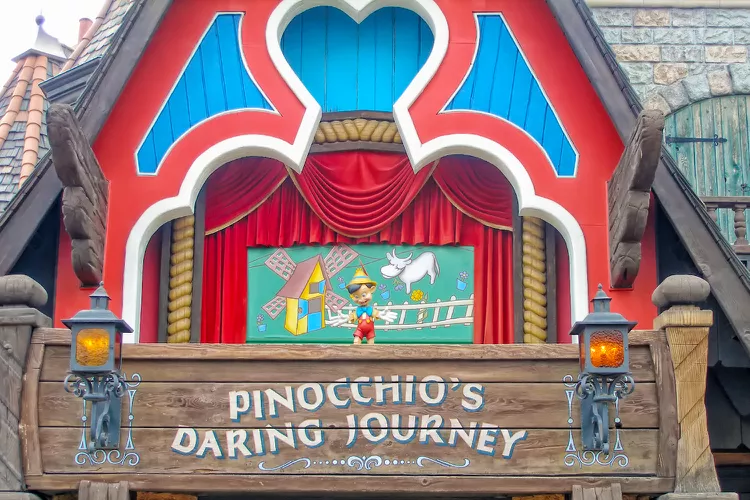 The Pinocchio ride was the last dark ride built in Fantasyland, added in 1983 after it was successful at Tokyo Disneyland. Disney removed the Mickey Mouse Club Theater to accommodate it.