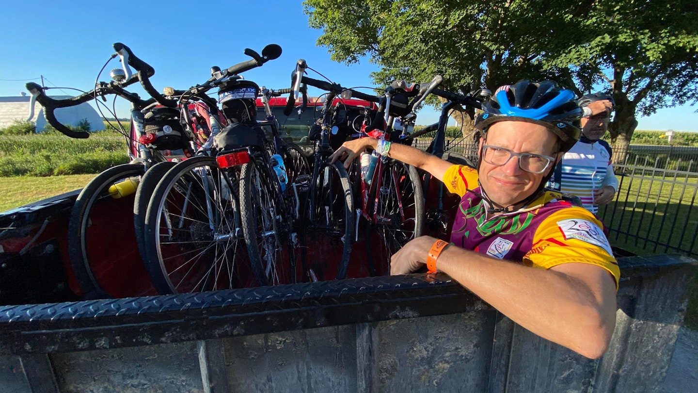 At one point, I found myself wedged behind seven bikes in the dusty bed of a pickup truck, rattling down a gravel road toward the start of that morning’s bicycle route in Charles City.