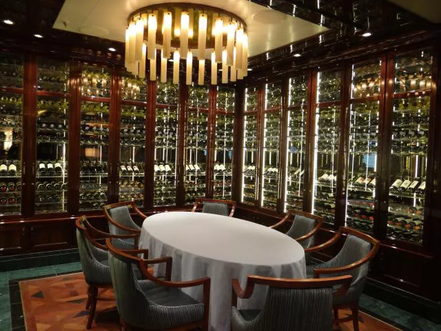 In addition to the many different dining venues around the ship, passengers also enjoy memorable dining experiences for an extra fee like the Chef’s Table Lumiere and the Wine Maker’s Dinner. As seen in the photo above, the Wine Maker’s Dinner is held in the Symphony and Concerto Dining Rooms at a special table. This table is appropriately surrounded by wine bottles, and the chef designs a special pairing menu for the participants to savor.