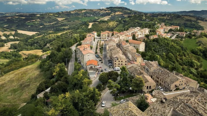 Petritoli, a picturesque village nestled on a hillside in Italy’s Le Marche region, can accommodate up to 200 guests in various charming bed-and-breakfasts, a historic castle, and lovely homes.
