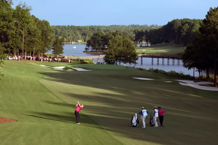 Designed by Tom Fazio and completed in 1997, the Reynolds National Course showcases Fazio’s mastery of golf course design, utilizing the natural landscape to create a visually stunning and challenging experience. The layout comprises three nine-hole configurations: the Ridge, the Cove, and the Bluff, which can be played in various combinations to form 18-hole rounds. Water hazards significantly enhance the challenge of this course, with Fazio ensuring that each combination presents unique strategic considerations. Players encounter tight fairways bordered by tall pines and hardwoods, demanding doglegs, and slick undulating greens that necessitate precise club selection.