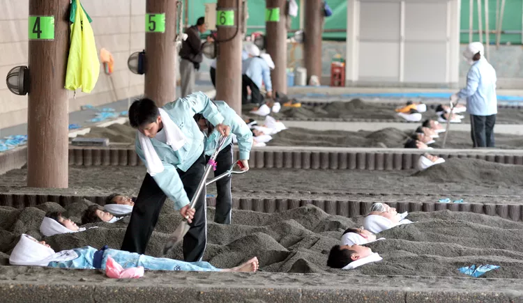 One of the most notable locations to enjoy a sand bath is on the southern Japanese island of Kyushu, renowned for its warm volcanic soils and hot springs. Visitors can experience a unique sand bath while wearing a traditional yukata. Attendants cover bathers in heavy sand, which enhances relaxation and detoxification despite the initial discomfort of immobility.