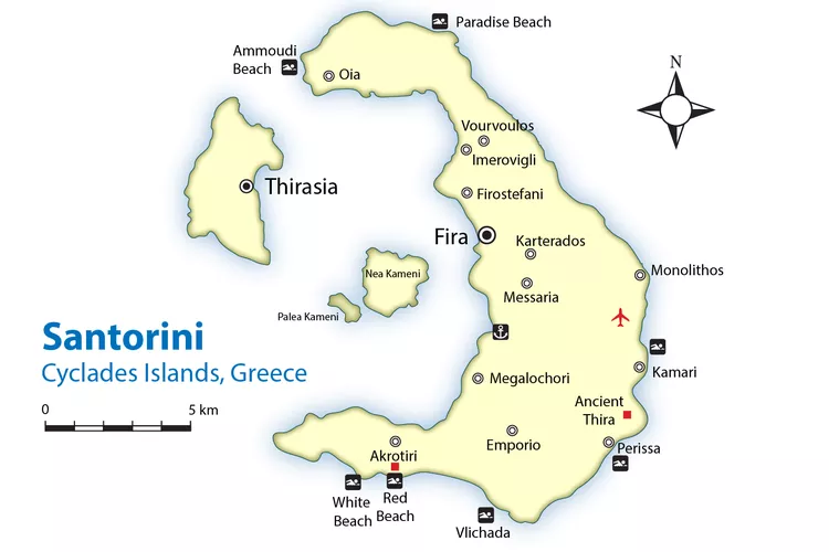 Santorini, also known as Thera or Thira, is a breathtaking volcanic island and the southernmost member of the Cyclades. This remarkable destination boasts 13 charming villages and a population that swells from under 14,000 to much larger during the vibrant summer months. During this time, its renowned beaches become hubs for sun-soakers and adventure-seekers alike. The island’s stunning volcanic structure, which created its iconic landscape, is mapped out remarkably.