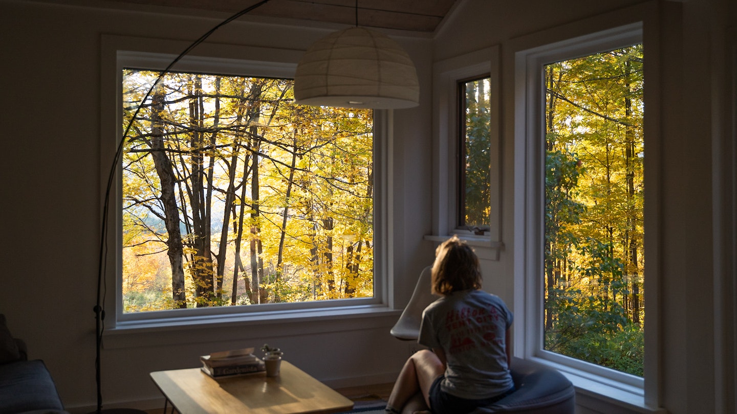 Three hours northeast of Boston, Waldhaus is billed as a modern forest home, making it an appealing retreat with its matte-black exterior and light-filled, bright-white interiors. Not to mention Nordic-tinged fixtures and soaring windows overlooking leafy vistas. Sip a morning pour-over on the deck, wade in the brook that runs through the property, or venture further afield for hiking trails and swimming holes galore. Pick up fresh produce from the farmstand on your way back, and after dinner, pull an Adirondack chair up to the fire surrounded by trees and greenery for a blissful escape. $182 per night.