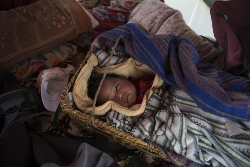 The mother of Dawa Chiri Sherpa cares for his 18-month-old daughter after the climbing guide was killed by a quake-triggered avalanche at Everest Base Camp.