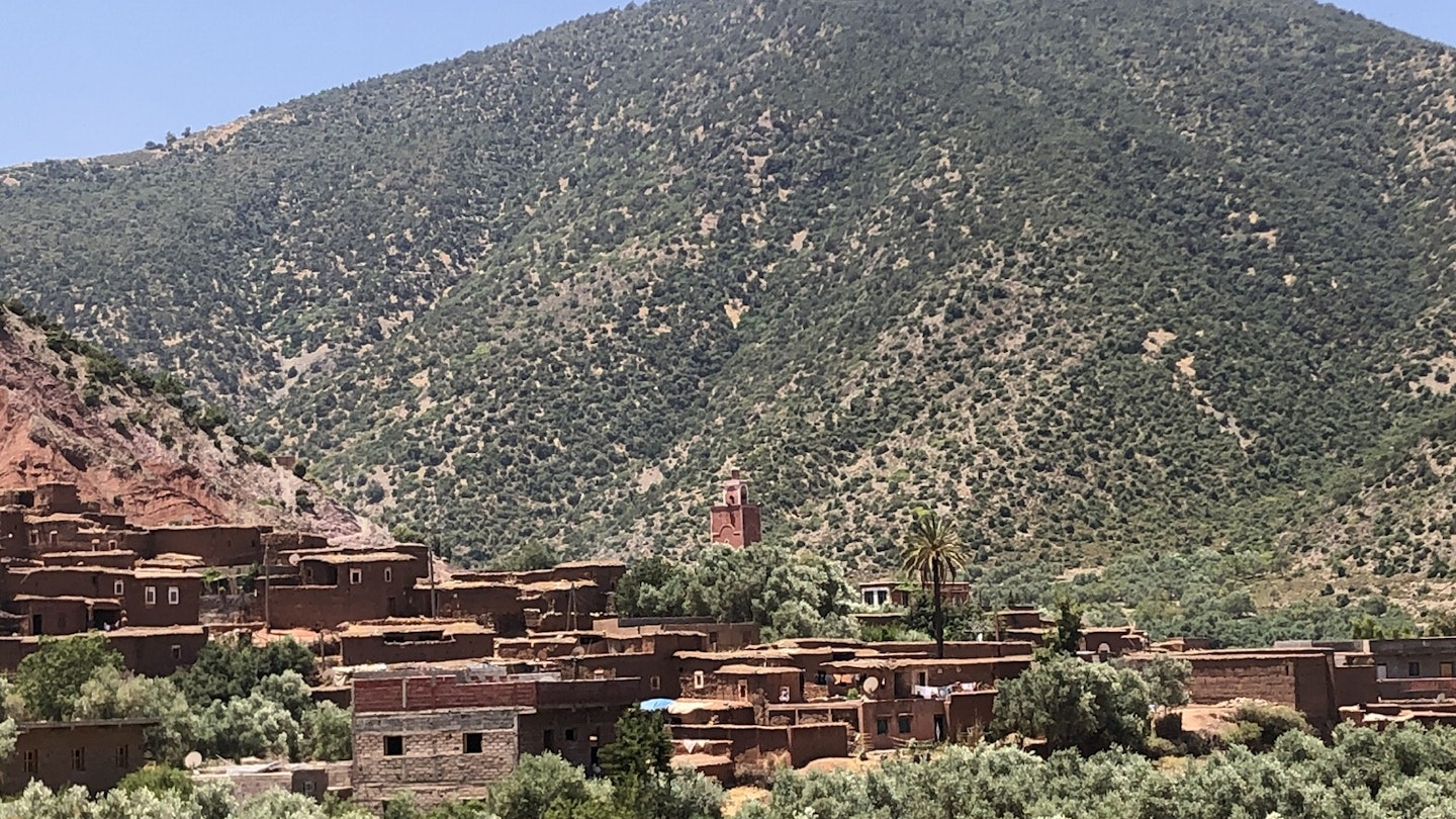 With three kids in tow, a 4WD trip seemed the best way to get us all (including my injured husband) deep into the mountainous environment. After sorting a driver, we were driven up a narrow road clinging to the mountainside. As inhospitable as the steep slopes looked, they were surprisingly very much inhabited. At every turn of the road, there were villages clinging to the rocks, with neat green fields pooling below in the valleys. And barely visible above us were always more mud-brick dwellings, each seemingly merging with the hillside under a pantone-blue sky. Along the way, we passed olive groves, the odd highlighter-green field, headscarved girls walking hand in hand, and more donkeys wavering under the weight of massive haystacks – it was a captivating experience for us all. We could have gone on and on as the narrow road continued to zigzag into the distance like a scar, but we stopped for sweet mint tea instead. Having quickly struck up a conversation with some locals, my eldest sat at another table: he’d found a rich stream of bonhomie as he knew something about Moroccan football.