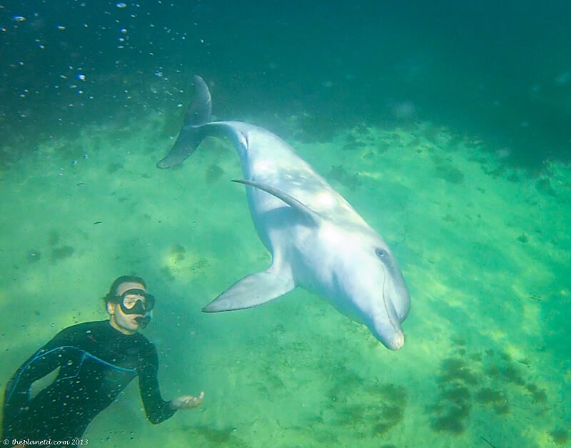 As mentioned, we’ve been fortunate to have two occasions to swim with wild dolphins: once in Honduras and once in New Zealand. However, neither came close to the experience we had in Baird Bay, South Australia. We had never witnessed dolphins linger around us for so long.
