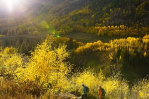 Nestled among the Rockies in Colorado’s Roaring Fork Valley, Aspen is a small, easy-to-navigate mountain town with lots to see and do. Since outdoor recreation is king here, you’ll see many people riding their bikes, walking, hiking, and sometimes even skiing or snowshoeing around town. This eco-friendly community, which deeply values sustainability, also has a robust bike-share program and many free bus routes to help ease traffic congestion, reduce pollution, and preserve Aspen’s historic character.