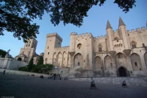 A landmark from across the lavender fields of Provence, the imposingPope’s Palacestands at the north end of the walled city. Towering above the mighty Rhône, the fourth longest river in France, Avignon was the home of the papacy from 1309 to 1377. Seven French popes ruled the Catholic world at a time when Italy was too dangerous. Between 1334 and 1352, they built this wonderful, extraordinary, and rich structure. The largest Gothic palace in the world, it served both as a fortress and a palace, made up of two buildings: thePalais Vieux(Old Palace) to the north and thePalace Neuf(New Palace) to the south.