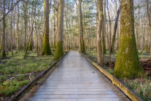 While the term “swamp” is frequently associated with Congaree, this relatively new national park actually represents a floodplain forest. It inundates approximately ten times annually, rejuvenating an already vibrant ecosystem.