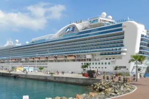 This tour of this cabin on the Emerald Princess is mini-suite D208, which is spacious, comfortable, and has lots of storage space for travelers who don’t pack light. The balcony is large enough for four chairs and a small table, and the cabin has a full-sized sofa and two TVs.