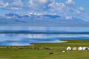 As you descend toward Bishkek’s Manas airport, you’ll witness the majestic, snow-capped peaks of the Tien Shan mountains stretching toward the southern horizon. These mountains, adorned with alpine lakes and expansive glaciers, form the backdrop for the rich nomadic culture that flourished here. Since the fall of the Soviet Union, these age-old cultural traditions have revived significantly.
