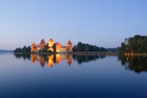 Trakai and Trakai Castle hold significant value in Lithuanian history. Associated with the Grand Duke Gediminas, a medieval hero of Lithuania, Trakai gained prominence before the Grand Duchy of Lithuania unified with Poland, leading to the formation of the Poland-Lithuania Commonwealth. Beginning in the 1400s, the area around the castle became a focal point, although human habitation existed long before. The name “Trakai” translates to “glade,” reflecting the area’s lush landscape.
