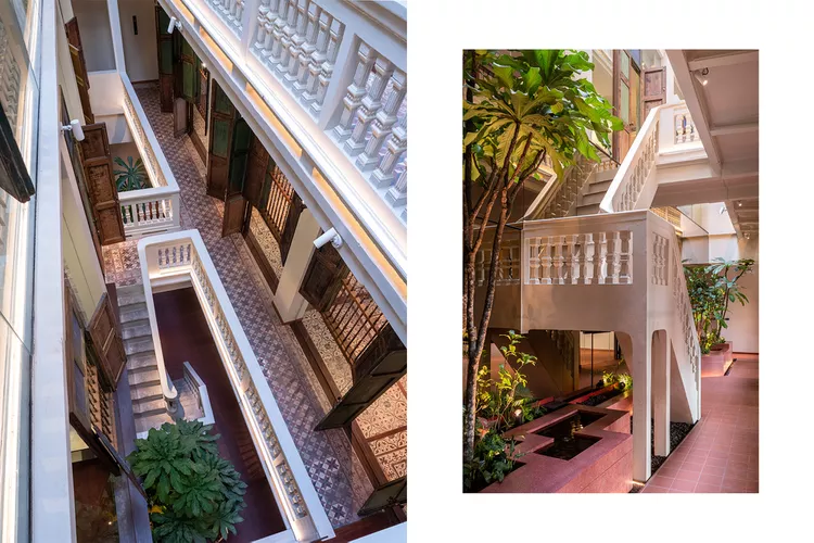 In the resort town of Hua Hin, three siblings have revitalized their grandmother’s beachfront property. Today, Charras Bhawan is a resort featuring five beautifully restored villas centered around the original 1922 structure. While family heirlooms and historical photographs adorn the wooden hallways, the villas are equipped with modern amenities like outdoor jacuzzis and private pools.