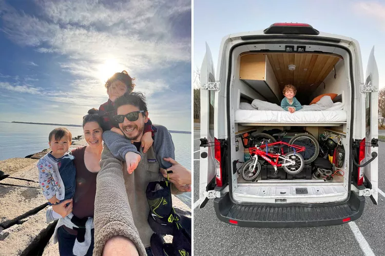 Our first day in the van didn’t go the way we’d hoped. My husband and I got a late start, and we only made it an hour from home before we had to pull over for burgers and to put our kids to bed. We were parked just off I-95, and our four-year-old, cramped in his new bunk bed, kept waking up his one-year-old sister. Then we realized we’d forgotten the sawdust for the composting toilet. (Whoops.) Still, after eight months of isolation in Connecticut, this late-fall family vacation to coastal Maine already felt like a major victory—one my husband and I celebrated by popping a bottle of champagne once Evie and Remy finally fell asleep.