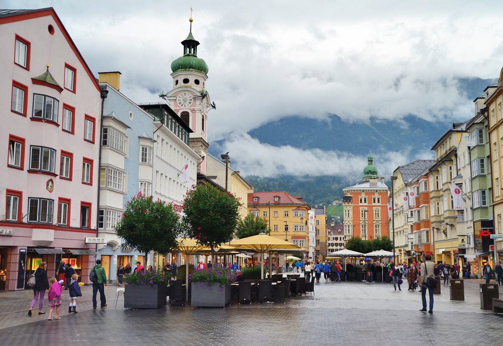 Visitors can enjoy dining or coffee at charming cafes and restaurants while appreciating the remarkable architecture that characterizes Innsbruck.