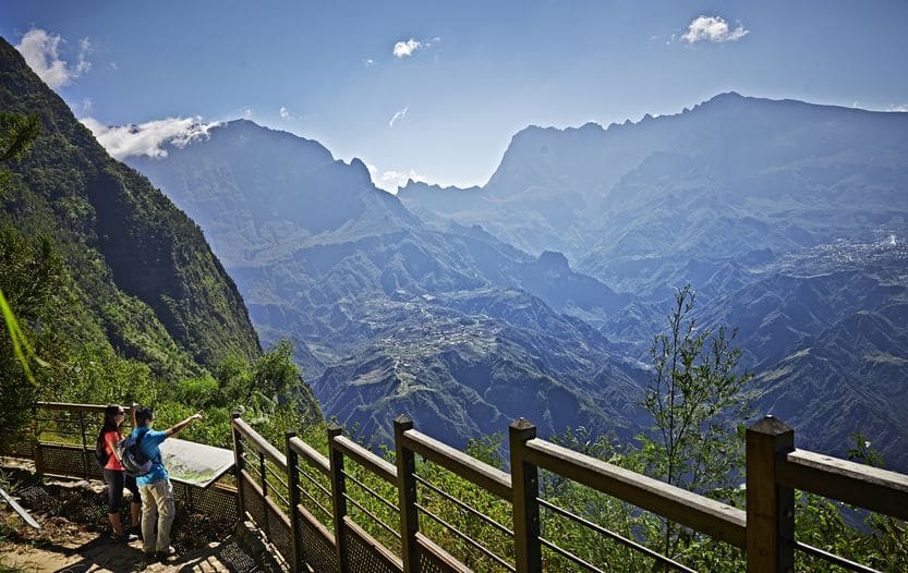 The breathtaking panoramas showcase the remarkable Cirque de Cilaos and the Piton des Neiges volcano.