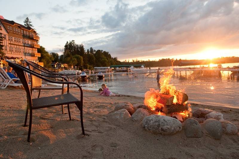 Summer activities include fishing, golfing, and boating, while winter brings opportunities for skiing, ice fishing, and snowmobiling, ensuring a thrilling experience for adventurous guests. Jack’s Beach Grill, located on the premises, serves fresh lakeside meals, including coastal-inspired options such as lobster tacos. The resort’s accommodations provide guests with optimal views and privacy, featuring balconies that overlook the lake, alongside whirlpool tubs and fireplaces for additional comfort.
