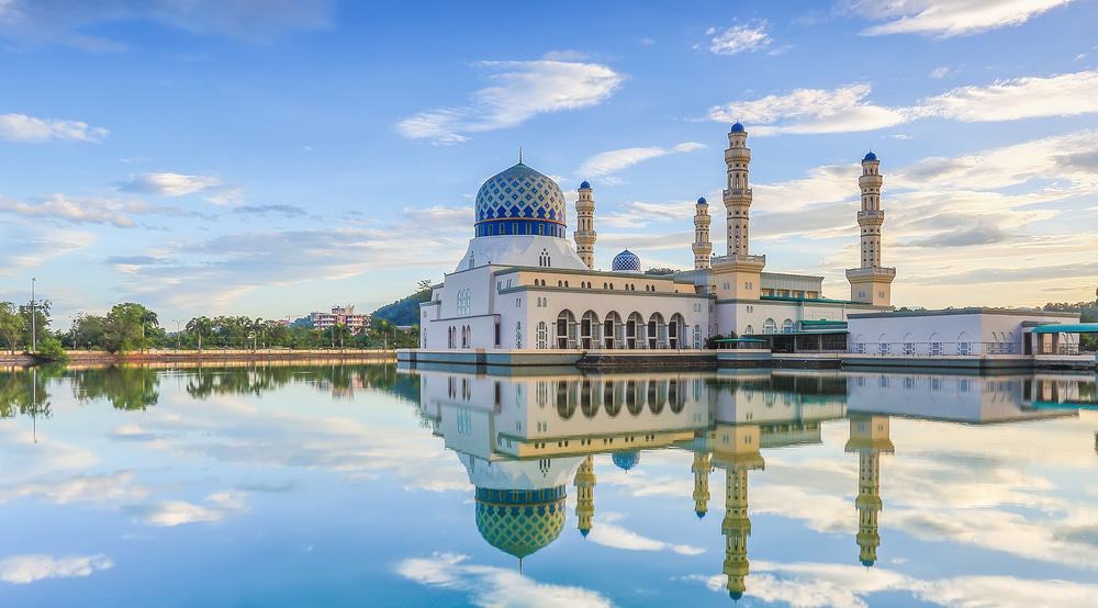 Located in the suburbs of Kota Kinabalu, the mosque features an impressive minaret that reaches a remarkable height of 215 feet.