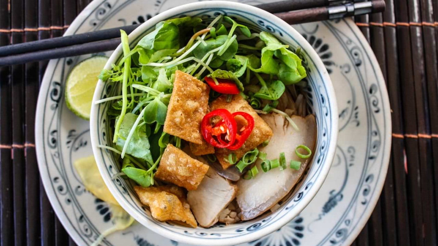 The name cao lau – literally ‘high floor’ – points to the riverside eateries where seafaring traders would tuck into a bowl of chewy noodles while waiting for their goods to be offloaded. Moreover, the firm, broad noodles, somewhere between Chinese flat noodles and Japanese buckwheat soba, are made from rice which is soaked in water from the ancient Ba Le Well (dating to Cham times) mixed with ash from trees from the Cham Islands, just off Hoi An’s coastline. Therefore, this combination means authentic cao lau can really only be found in Hoi An.