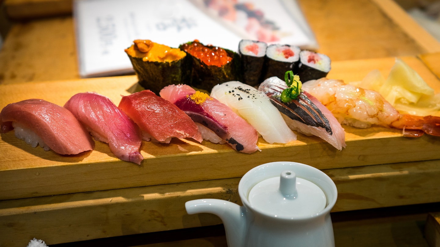 Post-auction, head to one of the market’s food stalls for a classic Tsukiji sashimi breakfast. Glistening slices of tuna, salmon wedges the color of sunrise, tender shrimp, and unctuous heaps of uni (sea urchin) – it’s a work of art on a plate.