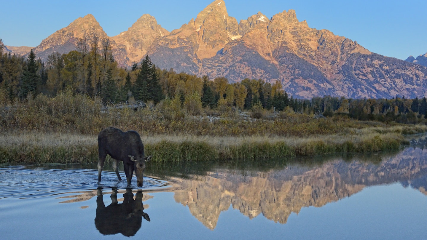 For the biggest panoramic views of the entire Teton Range, drive three-quarters of the way up Signal Mountain Road to Jackson Point. Arrive at dawn to witness the Tetons bathed in pink light above a sea of morning fog.