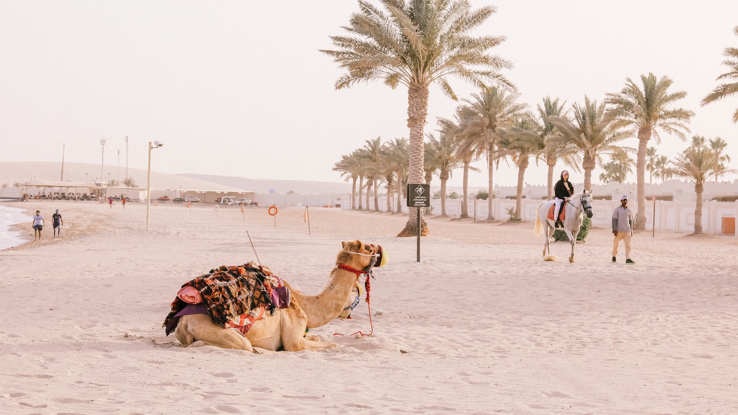 While most of Qatar’s premier beaches lie along the east coast, for a different experience, drive about an hour west of Doha to Umm Bab Beach. Also known as Palm Tree Beach due to its charming clusters of palm trees, this shallow beach is popular with locals for winter camping, so you may encounter tents and caravans dotting the landscape.