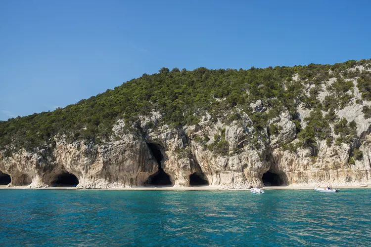 You can walk here via a three-hour hike from Cala Fuili, a pebble beach near the town of Cala Gonone. On the way, make a detour to the Grotta del Bue Marino, an otherworldly sea grotto with daily tours. Alternatively, you can do as most visitors do and arrive at the grotto by boat.