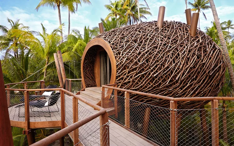 The Brando features 35 thatched-roof villas, each with its own private pool and access to white-sand beaches. If that doesn’t impress you, the resort is eco-friendly, too. Air-conditioning comes from a seawater-powered system and a blend of solar- and coconut oil-based energy grids allow for near carbon neutrality. Consequently, each villa is equipped with bicycles, allowing guests to explore the island without using a car. Visitors can access the property via a 20-minute private flight from Tahiti, which lies just 30 miles south.