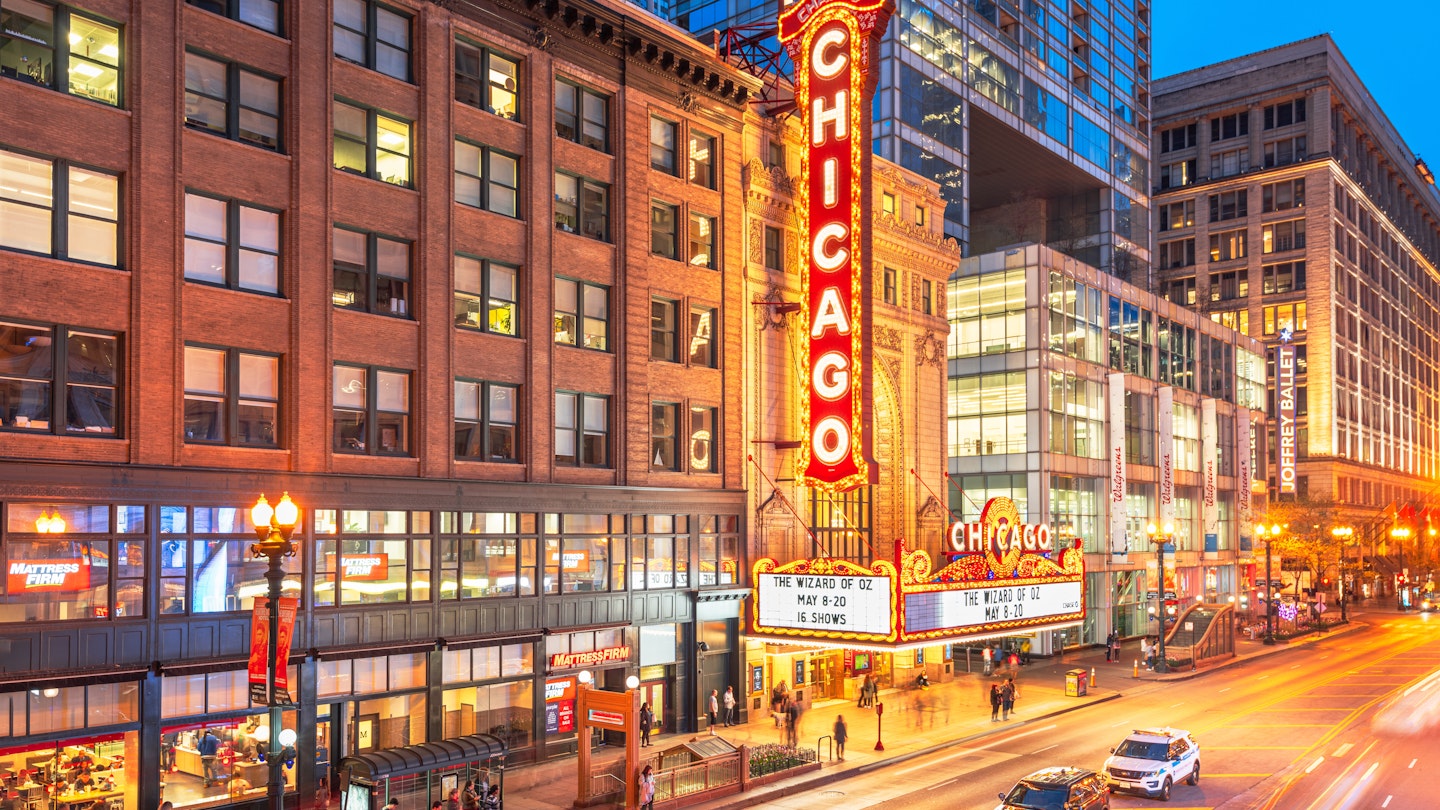 The Theater District in downtown Chicago is home to dazzling touring productions housed in historic, neon-lit playhouses. The iconic Chicago Theatre stands out among these. Other notable venues include the Cadillac Palace Theatre and the Nederlander Theatre, both presenting major productions such as Back to the Future: The Musical.