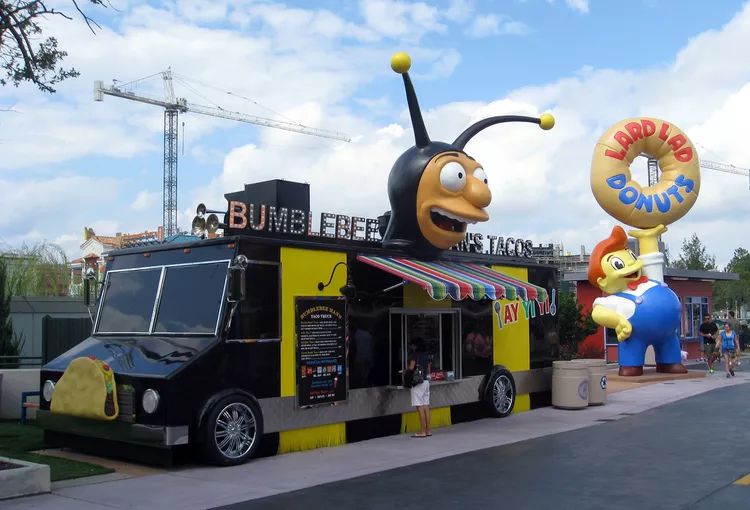 This food truck is found in the Simpsons section of Universal Studios park, specializing in tacos. You can choose from fillings such as fish, chicken, or steak. Although the setting is casual, the tacos are delightful. Visitors are encouraged to show kindness to the servers in their bumblebee costumes.