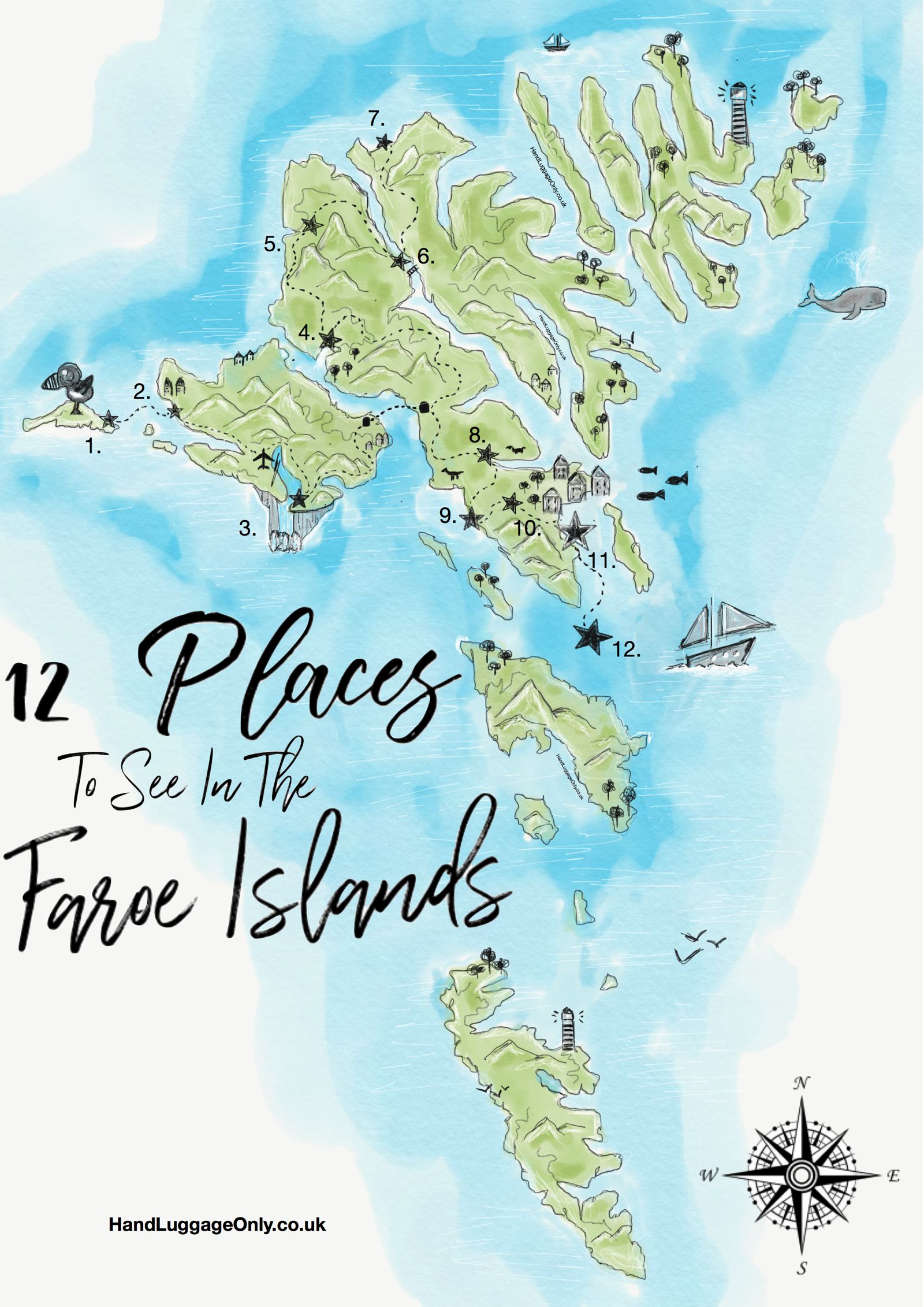 To facilitate your planning of the most enjoyable activities in the Faroe Islands, I have prepared a map for your convenience. For any inquiries regarding your adventure in the Faroe Islands, feel free to reach out.