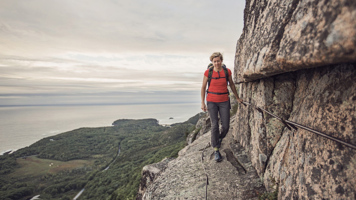 Acadia National Park offers incredible mountain peaks to climb for breathtaking views of the Atlantic Ocean and Maine’s dramatic coastline. The Beehive Trail is one of the most unique trails in Acadia National Park, requiring hikers to climb iron rung ladders bolted to granite.