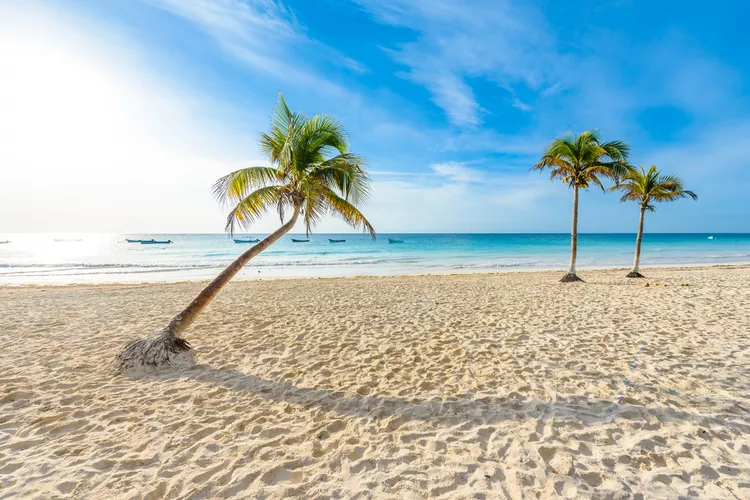Here, you’ll find undeveloped, white-sand beaches, languidly swaying palms, thick mangrove forests, and glittering cerulean waters. Pack your camera—this is where you’ll see some of the best wildlife in the Mexican Caribbean, including dolphins, whales, spider monkeys, jaguars, and ocelots, among other creatures.