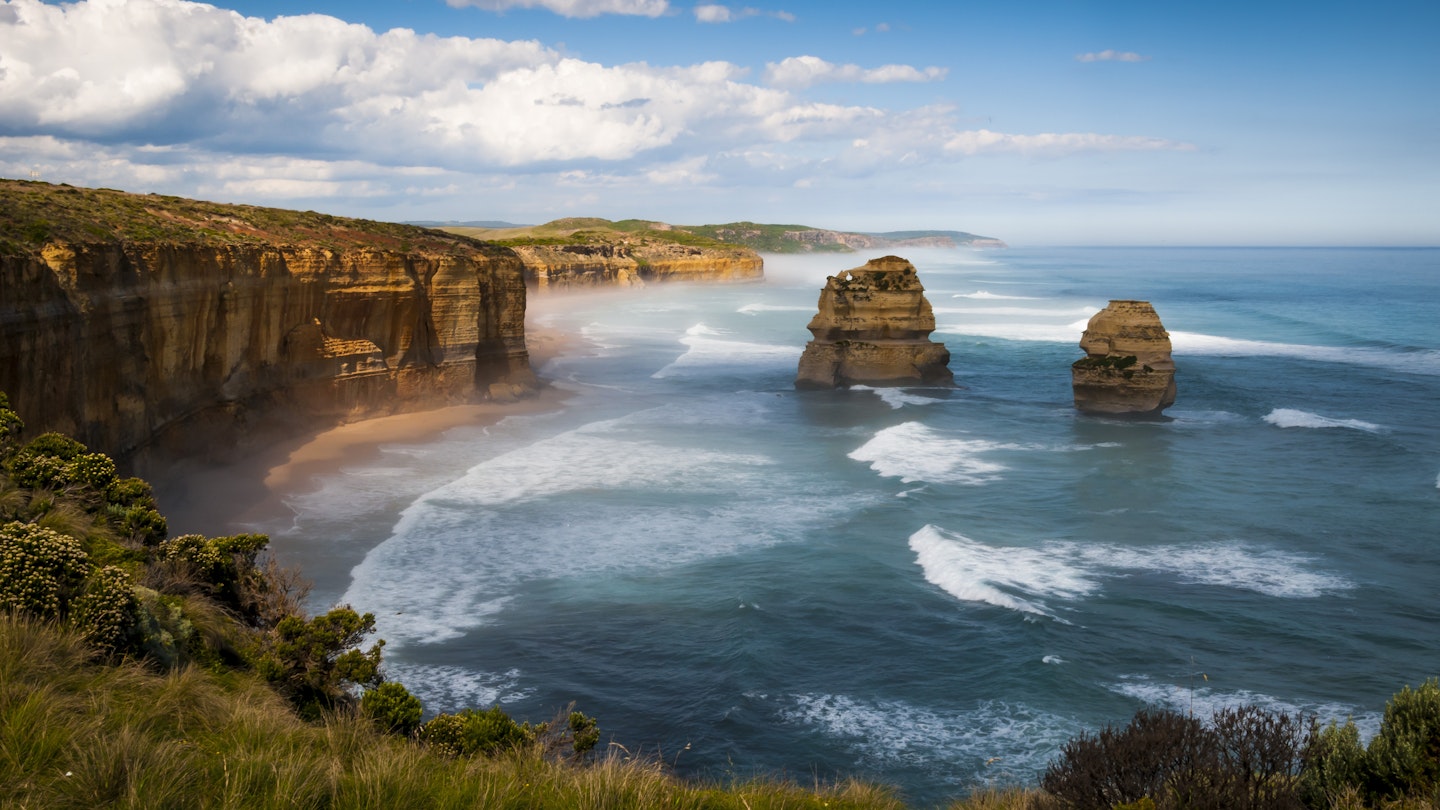 The Twelve Apostles are the most iconic image along the Great Ocean Road. These impressive limestone stacks rise majestically from the ocean, mesmerizing any visitor. Although there never were twelve apostles, their dramatic presence captivates all who visit. The best time to witness their grandeur is at sunset, where stunning hues play across the sky and the coastline.