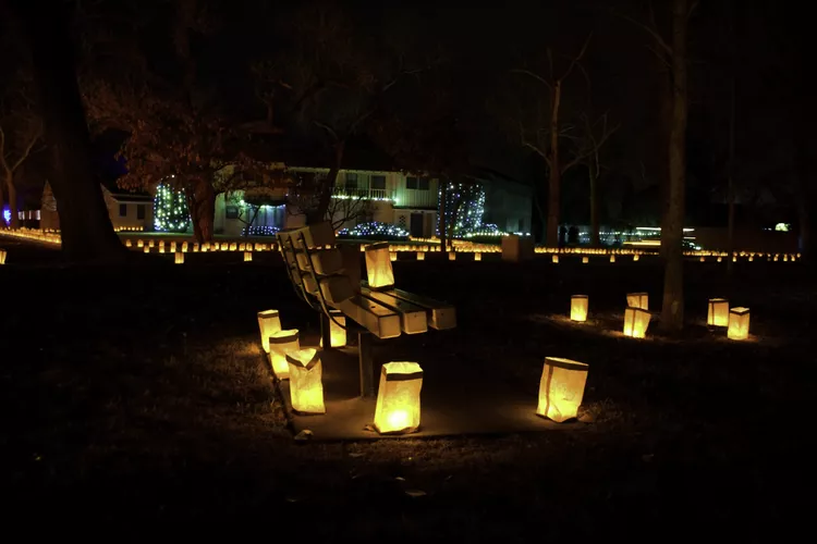 The luminarias consist of paper bags filled with sand or dirt, with a votive candle illuminating the scene. The folded tops create a uniform and unique look. These beautiful lights are strategically placed along pathways leading to homes. Certain neighborhoods in Albuquerque showcase exceptional displays of luminarias on Christmas Eve, some more suited for a drive-through experience while others invite visitors to admire the flickering lights up close.