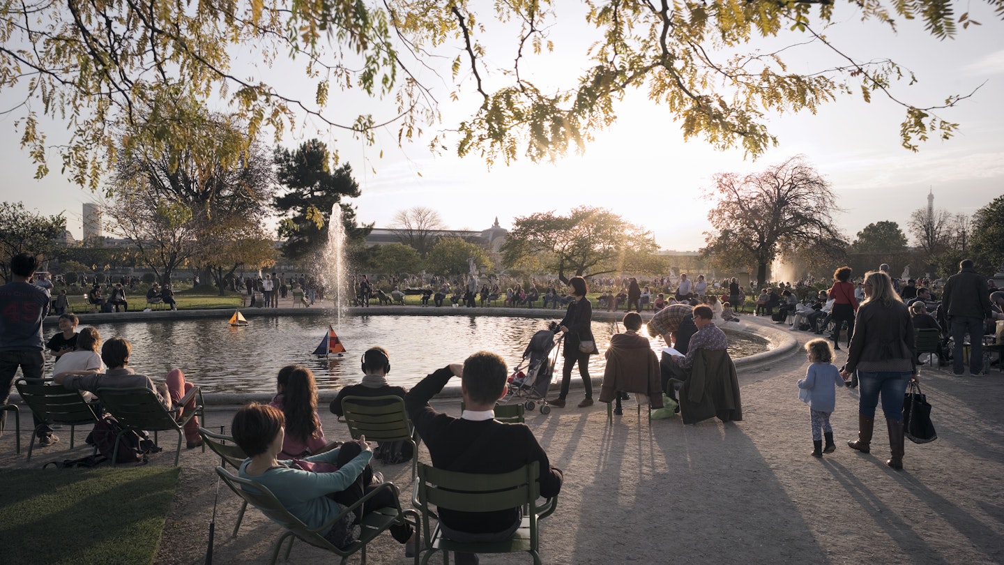 Old men play rapid-fire chess with cherished pieces at weathered tables. Students pore over books between lectures. Office workers snatch some sunshine, lounging in iconic sage-green metal chairs. Musicians strike up in the bandstand, joggers loop past stately statues, and friends meet to make plans for the future.