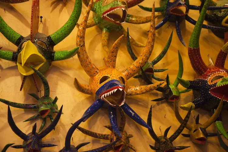 True to its name, Máscaras de Puerto Rico specializes in vejigante masks. These unique wall-hangings range from small, inexpensive, crudely made miniatures to fantastic, vivid creations filled with teeth, horns, and grimaces. The two broad styles include an oval-shaped mask made from a gourd or coconut shells and the demon-mask made from papier-mâché.