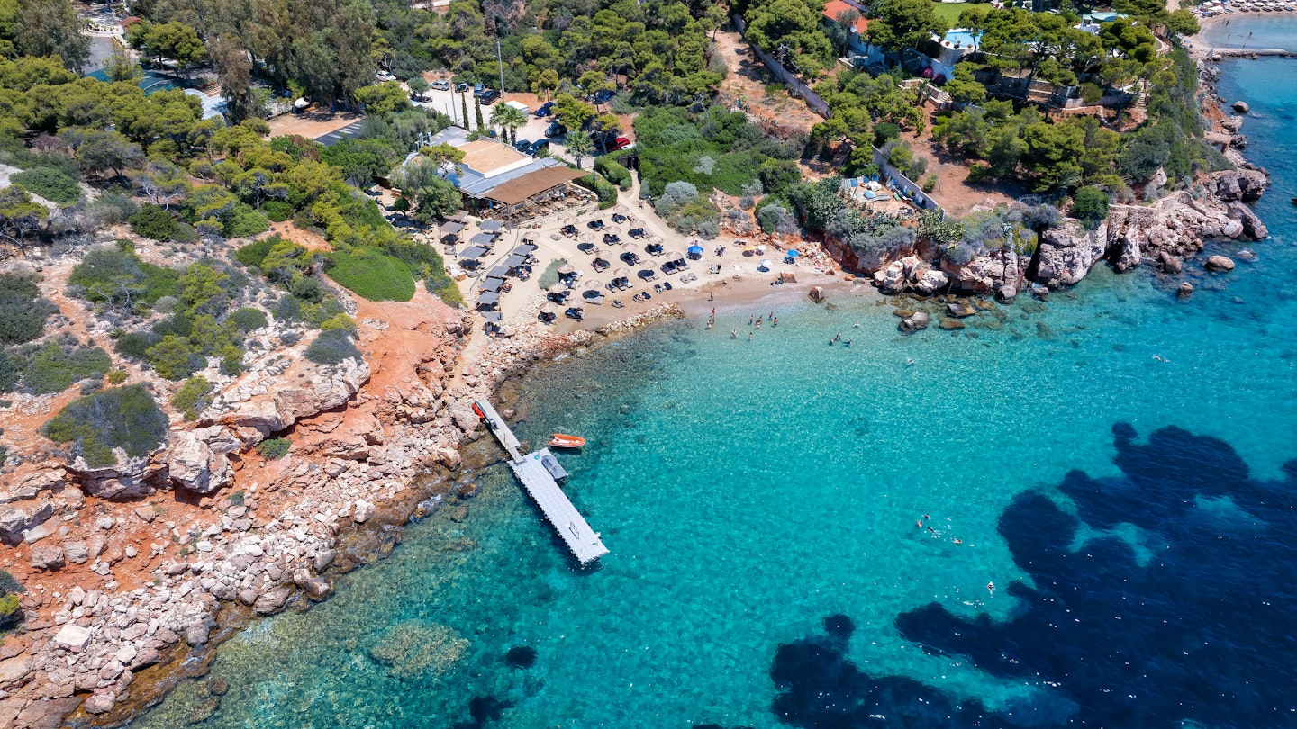 Located on the southernmost stretch of the Athens Riviera, Varkiza is a favorite spot for those seeking peace and tranquility. The beach features small sandy areas interspersed with rock formations where you can unwind in solitude. Varkiza Beach is free to visit and surrounded by a variety of restaurants and cafes. For a daybed, you can rent a chaise from the popular Varkiza Resort, where you can enjoy the lively atmosphere filled with seaside umbrellas and dining options.
