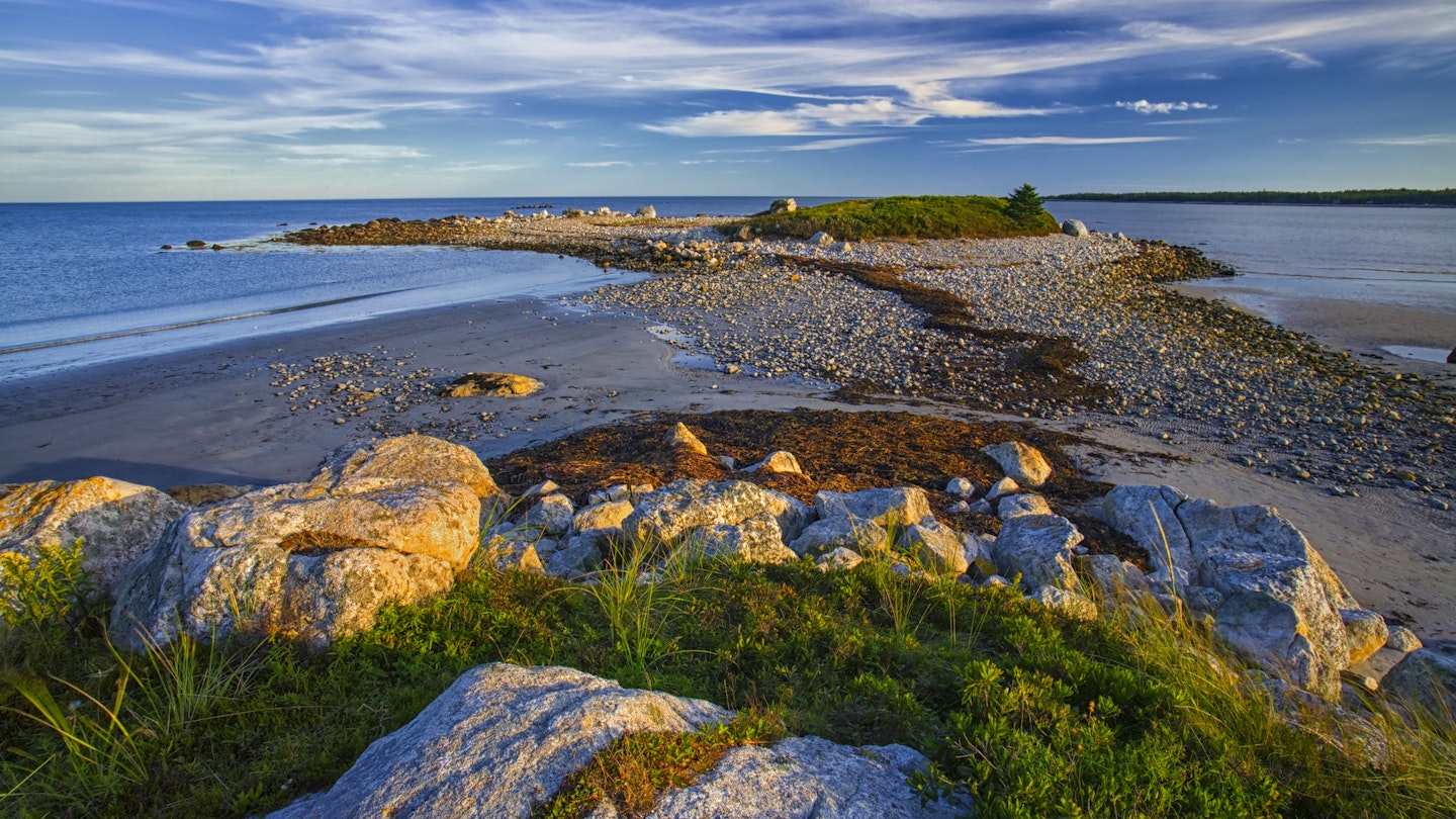 Winging Point is the wildest beach in Nova Scotia, featuring twin beaches that gracefully extend from a rocky point. Eagles glide overhead while seals bask on the sands. A 4 km (2.5-mile) hike through the Gabarus Wilderness Area leads to this breathtaking destination.