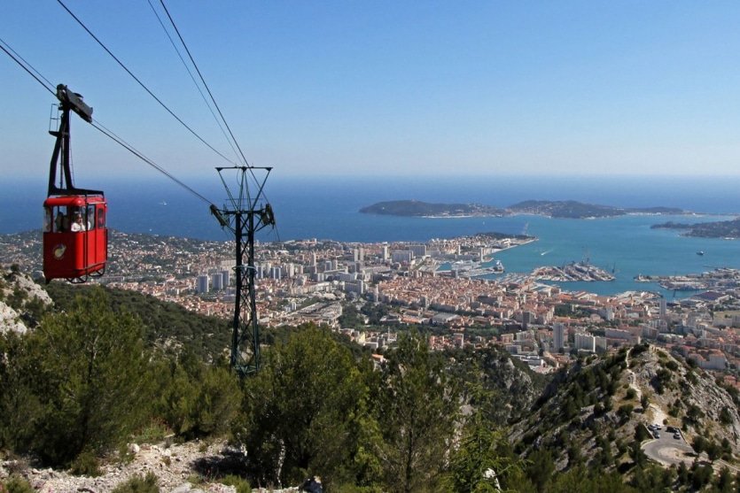The ride concludes in six minutes at the upper station, where visitors are greeted with sweeping views of Toulon and its iconic harbour below. The area also grants access to a network of hiking trails, and a small zoo featuring wild cats is located about 20 minutes from the upper station.